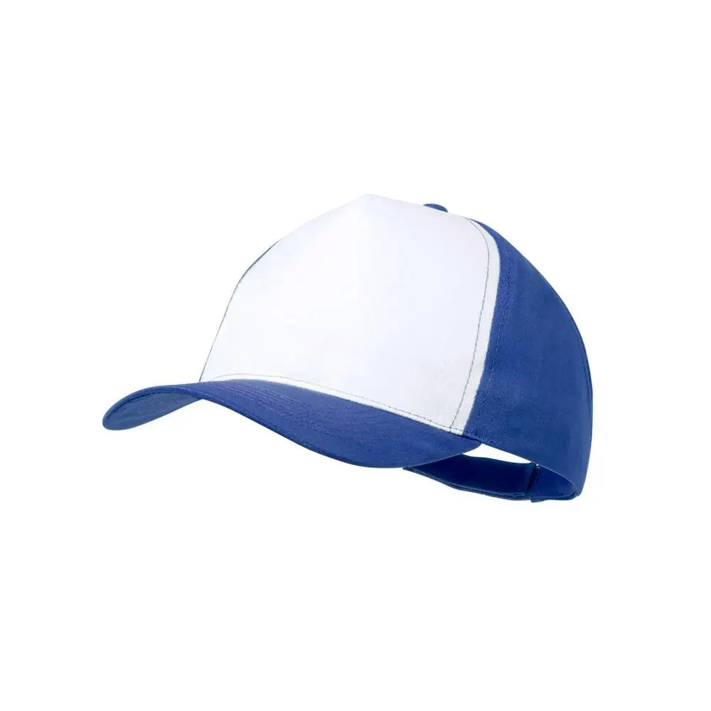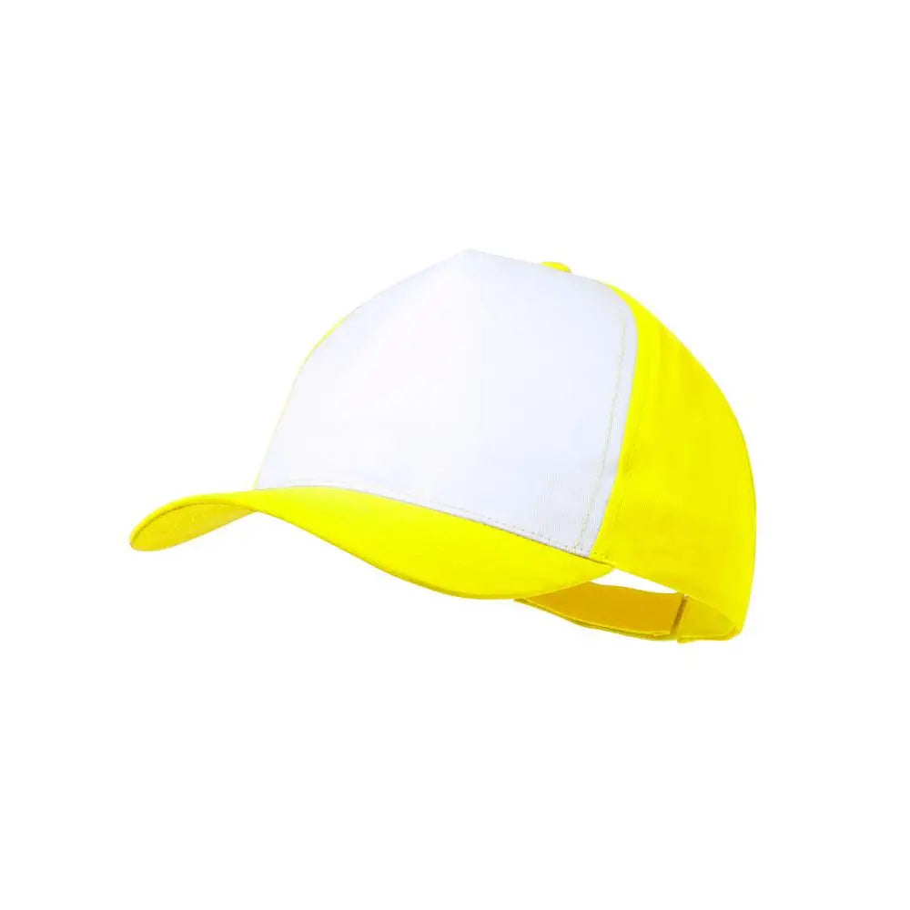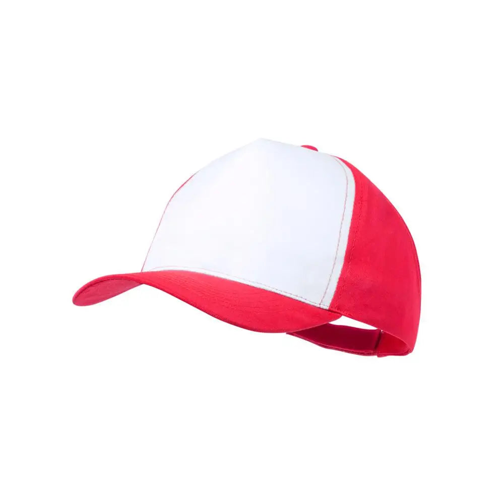 Casquettes à cinq panneaux et fermeture Velcro conçues pour être personnalisées en utilisant la technique de sublimation. Le panneau avant personnalisable est blanc, tandis que le corps et la visière sont disponibles en différentes couleurs pour correspondre au design choisi.