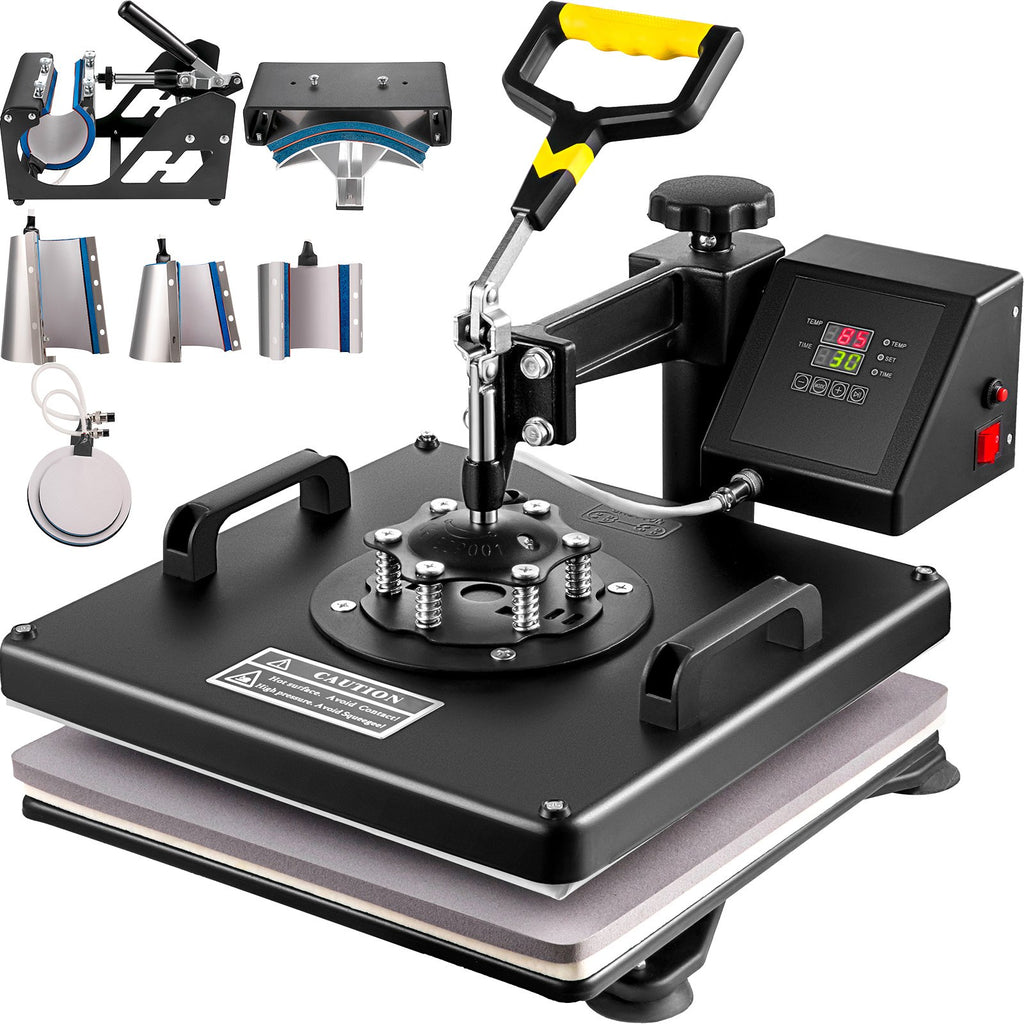 Avec la Machine Presse Chaude 8 en 1, vous obtiendrez tout ce dont vous avez besoin pour créer des impressions complexes : 1300W de puissance, une platine de 38 x 38 cm, une presse à chapeau, quatre presses à tasse, deux presses à plaques et un coussin en silicone amovible et coton. Et sans oublier le Manuel d'Utilisation ! Les T-shirts, tasses et chapeaux ne font pas partie de la livraison, alors laissez libre cours à votre imagination !